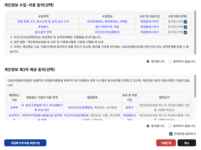 ② 개인정보 수집·이용동의, 개인정보 제3제 제공동의 (선택사항)
