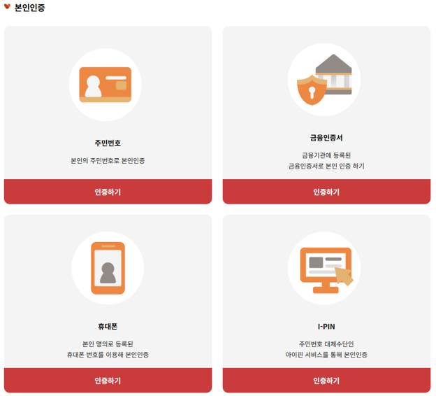 - 네가지 인증수단 중 하나를 선택하여 인증 (만 14세 미만은 보호자 동의 필수) -