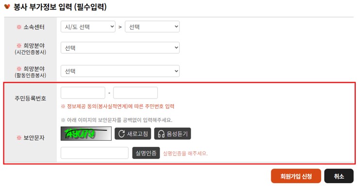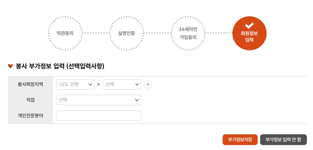 ⑥ 자원봉사활동을 위한 부가정보 입력 (선택)