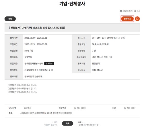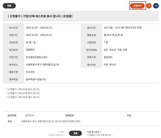 ③ 자원봉사활동 내용을 확인 후 신청하기 클릭